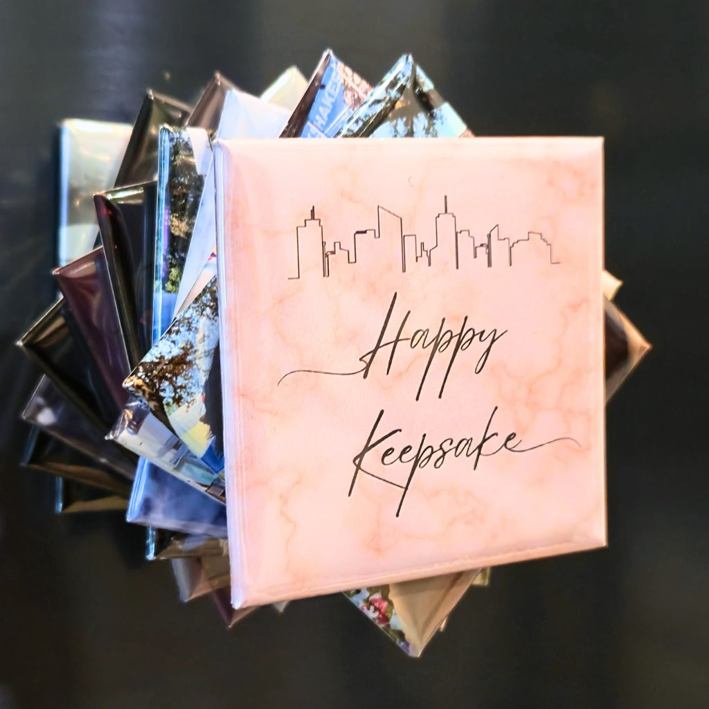 Welcome to Happy Keepsake! We believe the best memories are the ones you see every day. It started with our family's simple tradition: collecting souvenir magnets from our travels. Soon, we realized we also had countless cherished photos from those same trips. In that instant, inspiration struck: Blending the excitement of collecting souvenirs with the sentiment of our cherished photos.